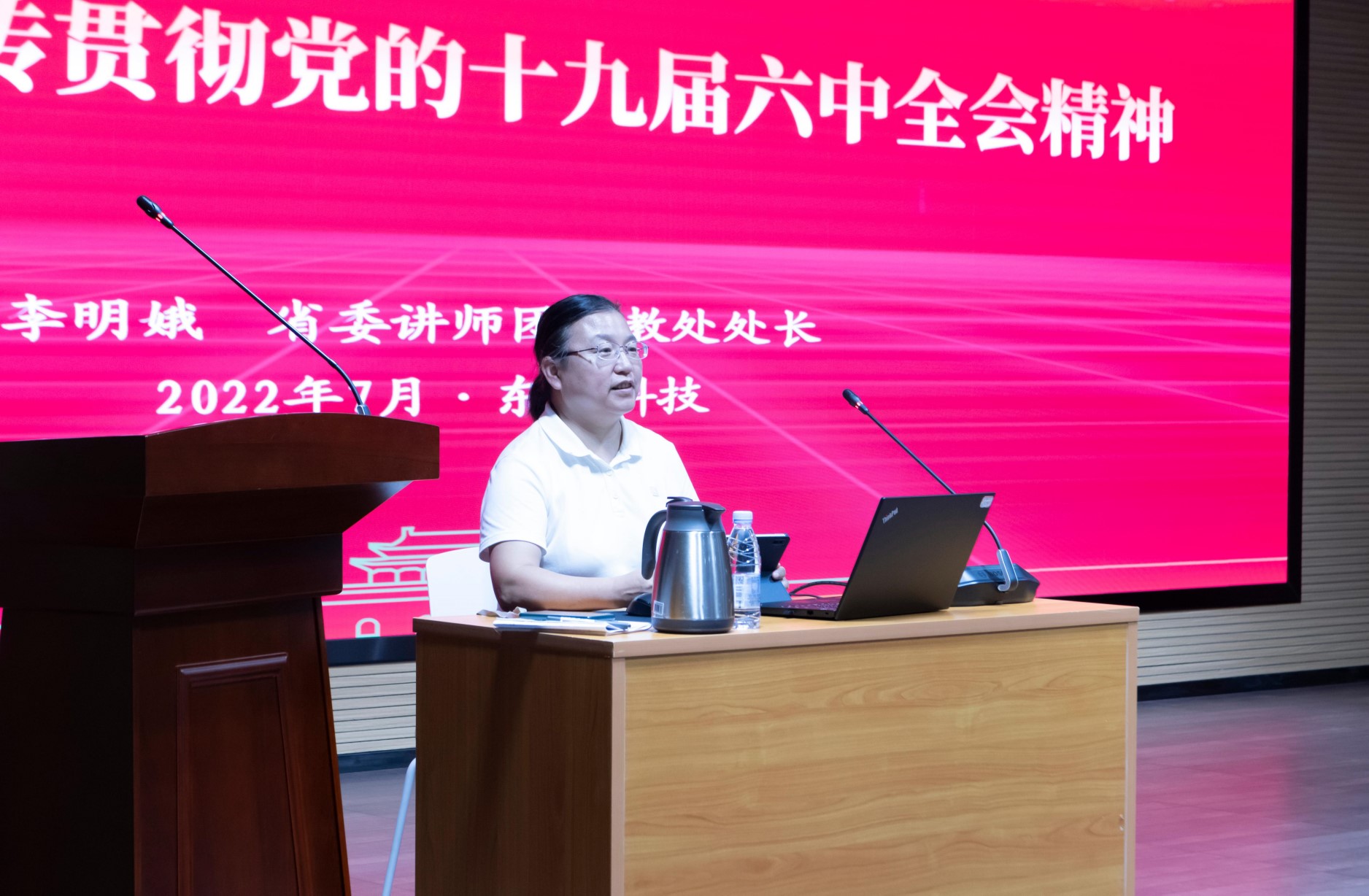 李明娥以“巾幗心向黨、喜迎二十大”為主題,結合“強國復興有我”主題教育,就十九屆六中全會精神進行了宣講。她從六中全會精神怎么學、怎么看,深刻認識黨的百年奮斗的歷史經驗以及如何學習貫徹六中全會精神四個方面進行授課,幫助大家更加深入、準確、系統學習領會全會精神,開拓思維,凝聚共識。