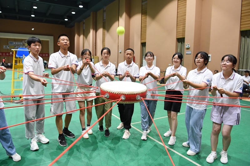 交流分享結(jié)束后,“合力搭建” “重走長征路”“同心擊鼓”等塑造團隊凝聚力的活動,給這些不常走出家門的老區(qū)學(xué)子們增強了自信和活力。